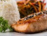 salmón sellado, bañado en salsa teriyaki, acompañado de arroz saborizado con mantequilla, tomillo y vegetales salteados.